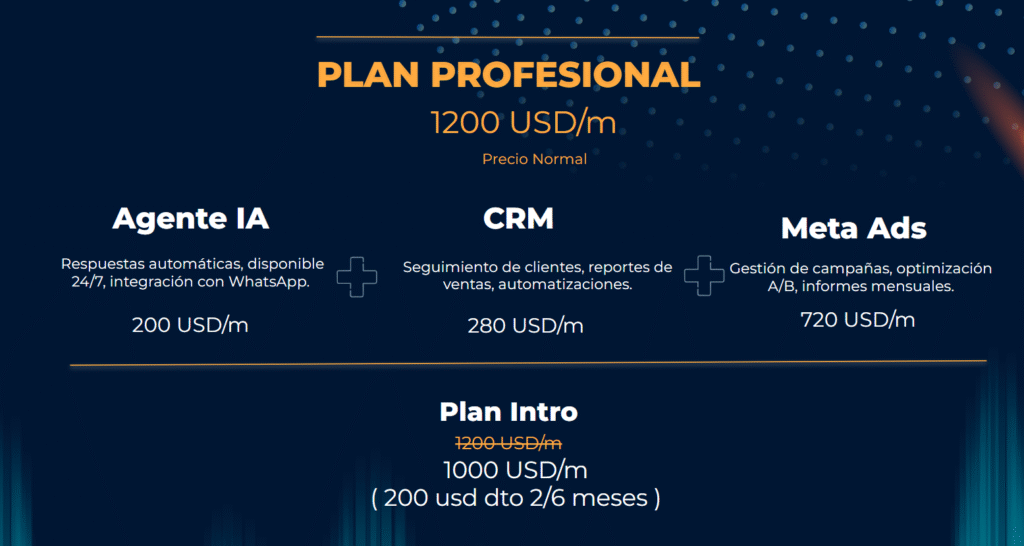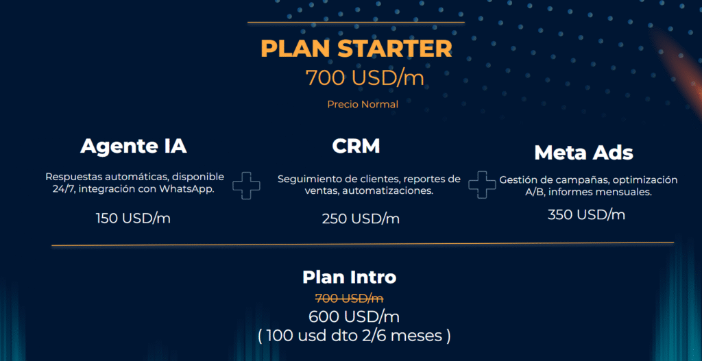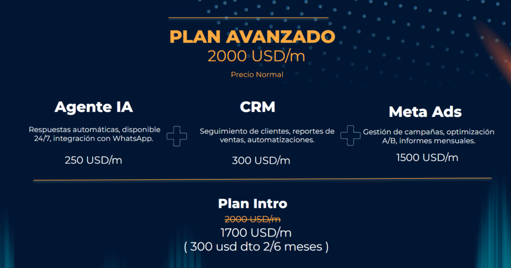 Desplegamos agentes en WhatsApp y web, conectamos tu CRM y canales de ads, lanzamos campañas con creatividades y pruebas A/B, y documentamos flujos para que tu equipo opere sin fricciones.